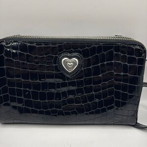 Brighton patent Croc-Embossed Crossbody Bag with Heart Detail