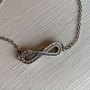 Like Brighton Starry Night infinity loop silver and crystal inset petite bracelet. Approximately 7” long with extender, see pictures for details.