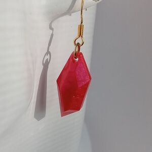 Bright pink geometric resin earrings with gold plated and hypoallergenic metal and ear wires