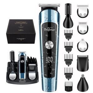 Brightup Beard Trimmer for Men, IPX7 Waterproof Mens Grooming Kit with Cordless Hair Clippers, Electric Razor with LED Display, Shavers for Mustache, Body, Face, Ear, Nose Hair Trimmer, Gifts for Men