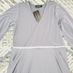 Brigitte Brianna Grey Wrap Maxi Dress Modest Spandex Comfy Long Boho Dress SZ L