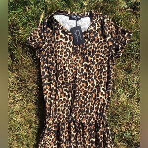 Brigitte Brianna Leopard Print Baseball Tee Mini Dress Pockets Stretchy Size M