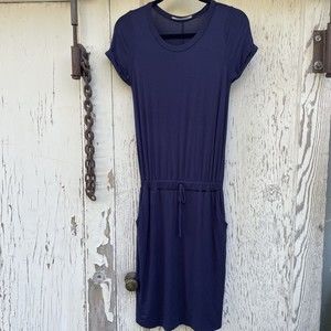 Brigitte Brianna Tee Shirt Dress in Women's Size Small Navy Blue Double Lined with Pockets. Heavy, Quality Item with Plenty of Life Left. The perfect dress for an on-the-move lifestyle to or from soccer games or errands. Make this your favorite go to dress!! Skirt is double lined for added comfort!! Perfect length with pockets for total comfort. In near perfect preloved condition as pictured.