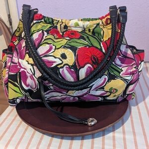 Brigthon Vibrant Floral Shoulder Bag with Black Accents