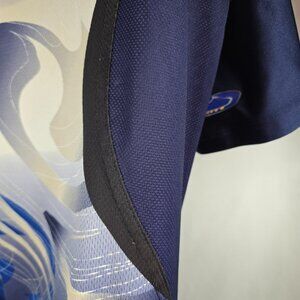 This Briko Cycling Jersey in size M features a slim fit with a 1/4 zip closure and short sleeves. The blue jersey is made of microfiber fabric with logo accents, suitable for cycling in summer, fall, and spring. It has pockets for convenience and comes with bonus Decathalon padded shorts. Great for activewear and casual occasions, this jersey is machine washable and ideal for biking enthusiasts. All have been cleaned, washed, and sanitized. Please note, the bonus padded shorts need minor mending and there is some staining.