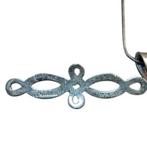 The pendant is marked Brilanti 950 MR and is 2 inches long. This length does not include the bale, which is just over half an inch long.