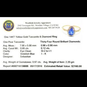 Brilliant .85ct Tanzanite Diamond Teardrop Halo Pear Engagement Ring 7.5 7 1/2