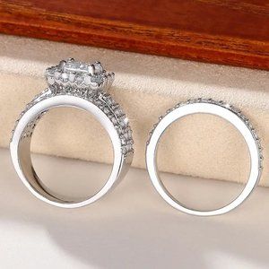 Brilliant Engagement Set Of Rings For Women Full Cubic Zirconia Luxury Proposal