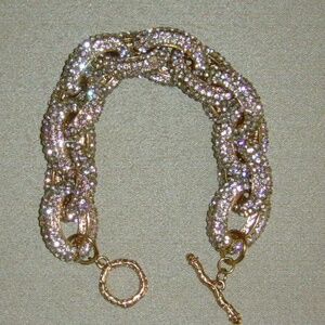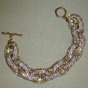 Brilliant Gold-Tone and Rhinestone Chain Link Bracelet - BLING! Measuring 7 1/2 inches long, each link measures approximately 1 1/4 inches long by 1 inch wide with a toggle hook closure. It is in excellent condition. Be sure to see the matching necklace sold separately.