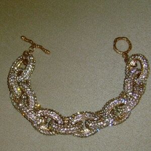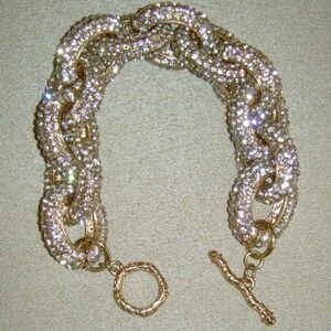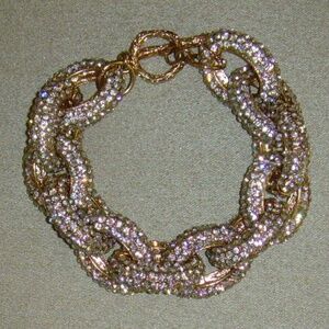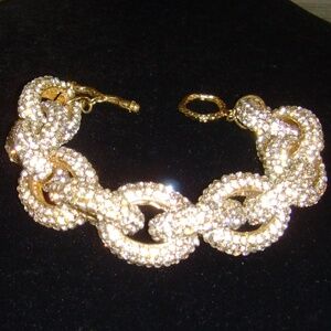 Brilliant Gold-Tone and Rhinestone Chain Link Bracelet - BLING!