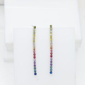 Brilliant Long Earrings Sterling Silver 925 Multi color 3mm cz (2.25' inch long)