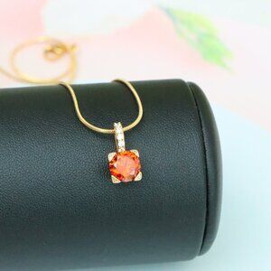 "Brilliant Red Round Pendant with Sparkling Bail in Gold Plated Finish, XPPT1719 Fiery red gemstone pendant set in ornate prongs with a diamond-studded bail. ✔️ Made with high quality brass and finished in radiant gold plating ✔️ Eye-catching red stone brings bold and vibrant elegance ✔️ Prong-set design with intricate detailing adds classic charm ✔️ Bail is accented with small white stones for extra sparkle ✔️ Size approx. 0.31 x 0.59 inches (0.8 x 1.5 cm) ✔️ Ideal for layering or as a standout solo piece"