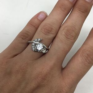 Small cz chips wrap around this center cut with a vine mentality leaving a simple leaf on the other side