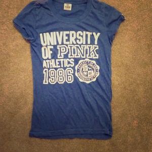 Brilliant blue Victoria secret athletics t-shirt with baby pink stitching super comfy to wear.