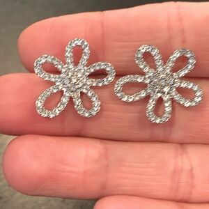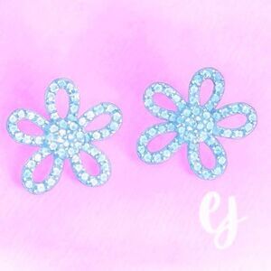 TAGS: crystal blossom earrings, floral studs, silver tone jewelry, boutique earrings, crystal flower studs, elegant accessories, minimalist sparkle