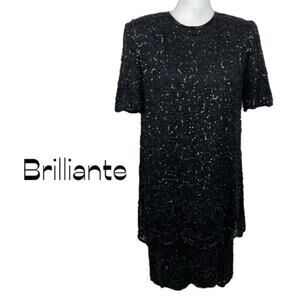 Brilliante by JA Black Beaded 100% Silk Party Event 90s Vintage Dress Size M