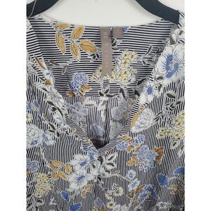 Brina & Em Blouse Small Womens Roll Tab Sleeve V Neck Multicolor Flowy Floral