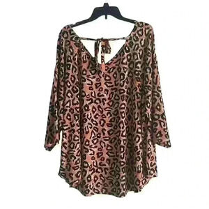 Brina & Em Woman’s Pink Black Animal Print Short Sleeve Plus Size Top- Size 3X