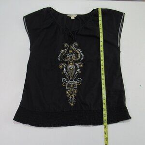 Brina & Em Women's Boho Embroidered Peasant Blouse w/Smocked Waistband Size M