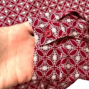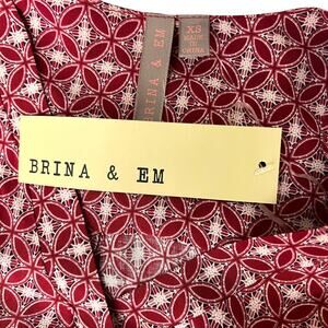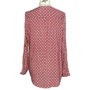 Brina & Em X-SMALL Geometric Pattern Roll Tab Sleeve Round High-Low Hem Blouse