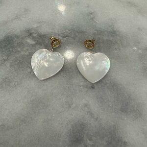Elegant heart-shaped earrings featuring a stunning white design with gold accents. Perfect for adding a touch of sophistication to any outfit.