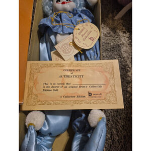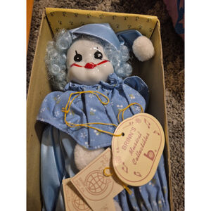 The Brinns 1986 Collectible Porcelain Musical Clown is a unique and nostalgic doll perfect for collectors or music enthusiasts. Made of porcelain in 1986, this doll features a charming clown design with a musical theme, making it a special addition to any doll collection. It includes a Certificate of Authenticity, adding to its value and rarity. Brinns is known for producing quality collectible dolls, and this particular piece is sure to delight fans of both music and vintage toys.