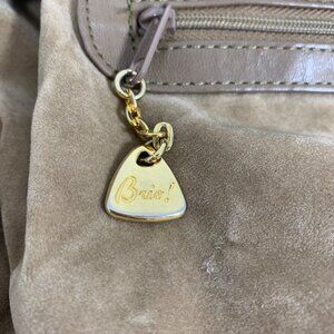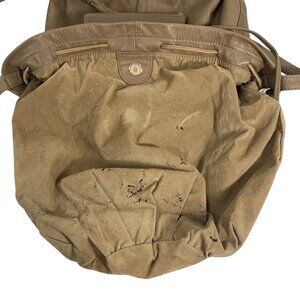 Brio! Taupe Leather Bucket Shoulder Bag Drawstring Adjustable Strap VTG 80s 90s