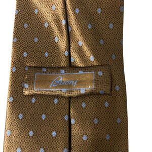 Brioni 100% Silk Tie Brown Geometric Print Handmade In Italy