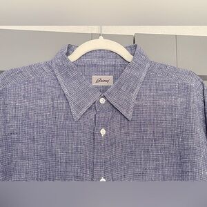 Brioni 3XL Blue Linen Button Down Shirt