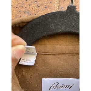 This Brioni dress shirt is a must-have for any stylish man's wardrobe. Crafted from 98% wool in Italy, this shirt boasts a solid brown color and long sleeves with button closure. The shirt is designed with a regular fit, making it comfortable and easy to wear for any occasion. The shirt is perfect for those who appreciate high-quality clothing and want to make a statement. The shirt is suitable for a variety of occasions, including formal events and casual outings.
