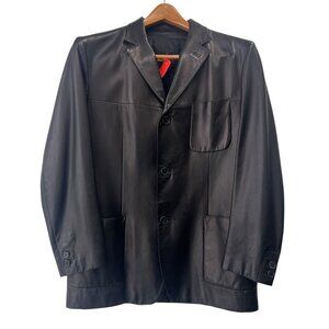 Brioni Black Leather Pocket Single Breasted Collared Jacket Men's size XL