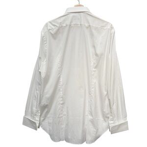 Features: 100% super soft cotton fabric. Long sleeves with french cuffs. Looks to be fitted by the seams in the back. Collared. Button down closure.
