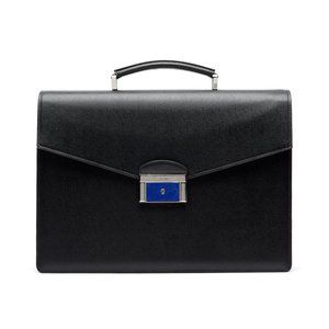 Brioni Leather Briefcase Document Holder Saffiano Abraham w/ Lapis Lazuli Stone