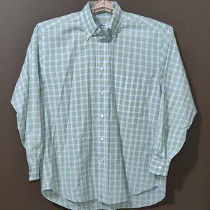 Brioni Made in Italy L/S Button Down Green/White Plaid Shirt Men's LARGE