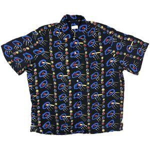 Brioni Mens Shirt Abstract Rayon Hawaiian Short Sleeve Size Large Made In Italy