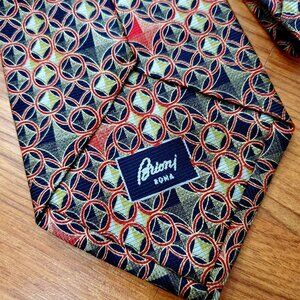 Brioni Mens Tie Geometric Circles Nice Fall Colors Gold Chain Silk Made in Italy