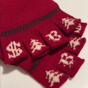 Brioni Red Knit Fingerless Gloves Italian wool dollar sign design