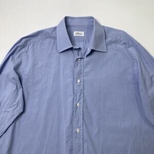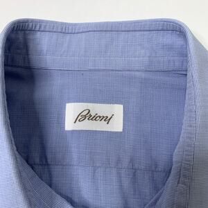 Brioni Shirt Mens L Large Cornflower Blue Button Up Long Sleeve Cotton Dress