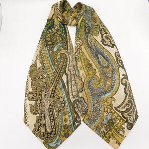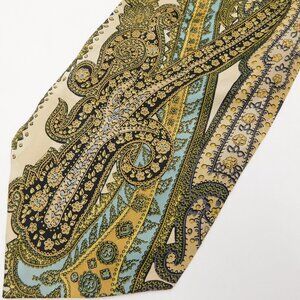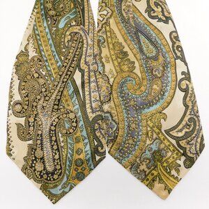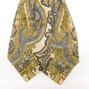 Brioni Silk Paisley Ascot Cravat | Vintage | Gold Brown Blue | VGUC