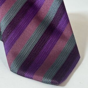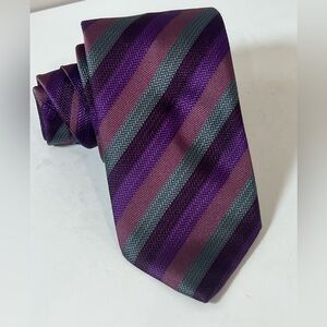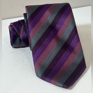 Brioni Ultra Lux Made in Italy 100% Silk Purple and Gray Striped Tie