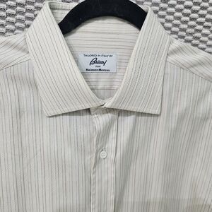 Brioni for Neiman Marcus Men's Pinstriped Cream Button-down Dress Shirt sz 16.5