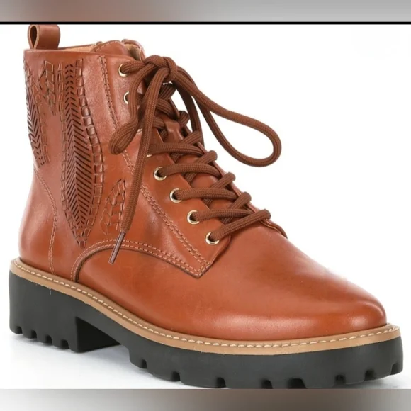 Brioso WHISKEY Cognac BROWN LIGHTWEIGHT LACE UP ZIP HIKING BOOTS NEW 7 1/2 $170