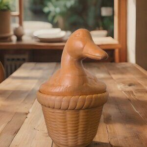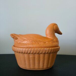 Bring rustic charm to your kitchen with this vintage Brique Ware terra cotta casserole dish. The detailed duck-shaped lid adds character to any farmhouse or country-inspired space. Durable and decorative, this piece is perfect for both serving and display. Clean, well-kept condition — a standout addition to any collection or kitchen.