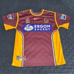Show your pride for the Brisbane Broncos with this authentic 2002 home jersey from Nike. The Brisbane Broncos and Telstra Premiership logos are embroidered. The jersey features the main sponsor from ‘02, Ergon Energy, on the front and back and Keno sponsorship on the sleeves. 100% Polyester; wash and care instructions are on the collar tag.