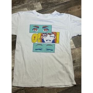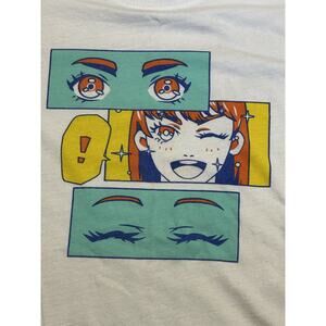 The unisex T-shirt has a regular fit and is perfect for both men and women. Some of the photos are stock this item is not new therefore no sticker showing on actual item. The graphic print accents the shirt, adding a touch of uniqueness to your anime-themed outfit. This shirt is perfect for any occasion and is a must-have for any anime fan.