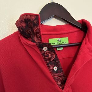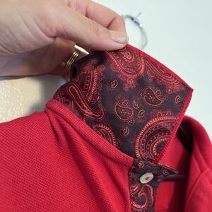 Bristol & Bull Contrast Silk Paisley Collared Pique Cotton Polo Shirt, Red- Med.