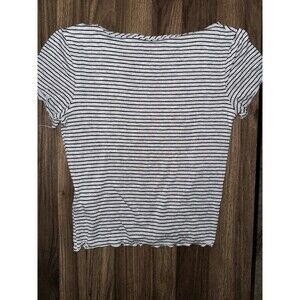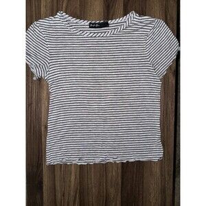 Brit & Bri Short Sleeve Lettuce Trim Striped Crop Top Small