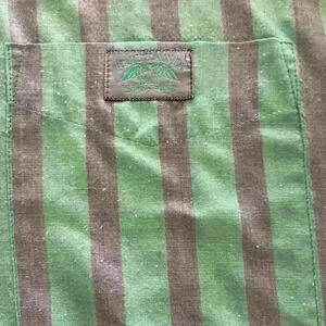 Short sleeve button down collar green and gray striped shirt. Please see pictures for condition. Pit to Pit 23 3/4inches shoulder to hem 27 1/2 inches. REF824