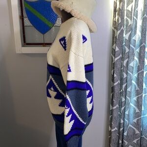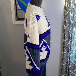 Britches 100% wool geometric patterned crew neck sweater. Size small. In excellent vintage condition. Measures 21” across the chest, 25” long & has 21” long sleeves.