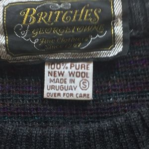 This basic black sweater has a fun spin with little colored stitches you can only see up close! It has a couple snags and a small hole on one sleeve, but it's a nice sweater with lots of life left in it. Comment with any questions, and don’t forget the bundle discount!